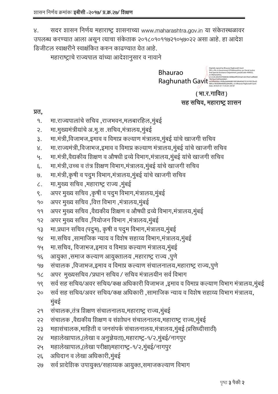 विशेष मागास प्रवर्गातील विद्यार्थ्यांच्या