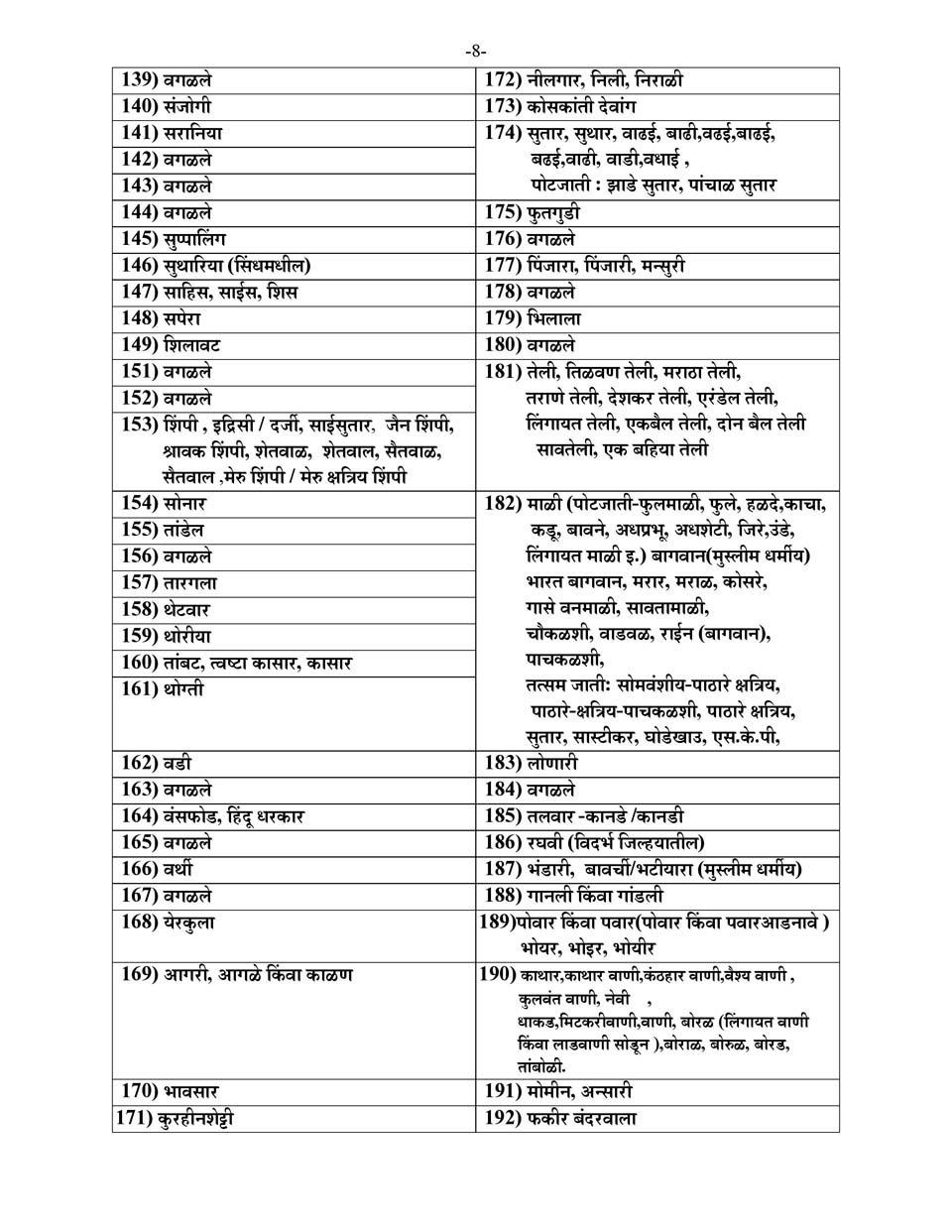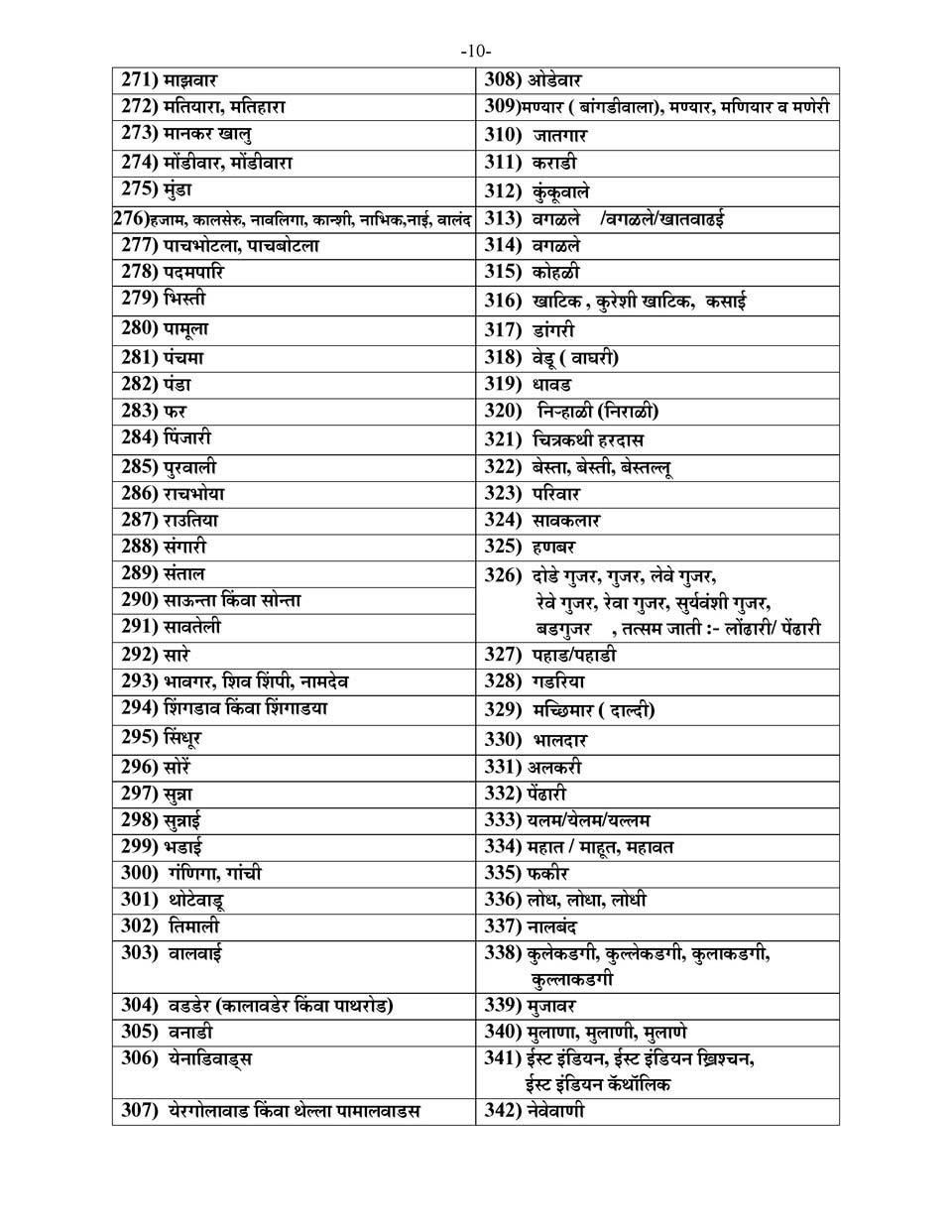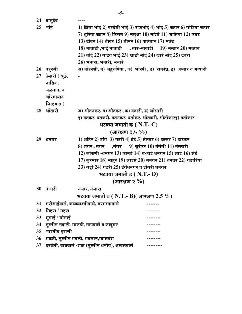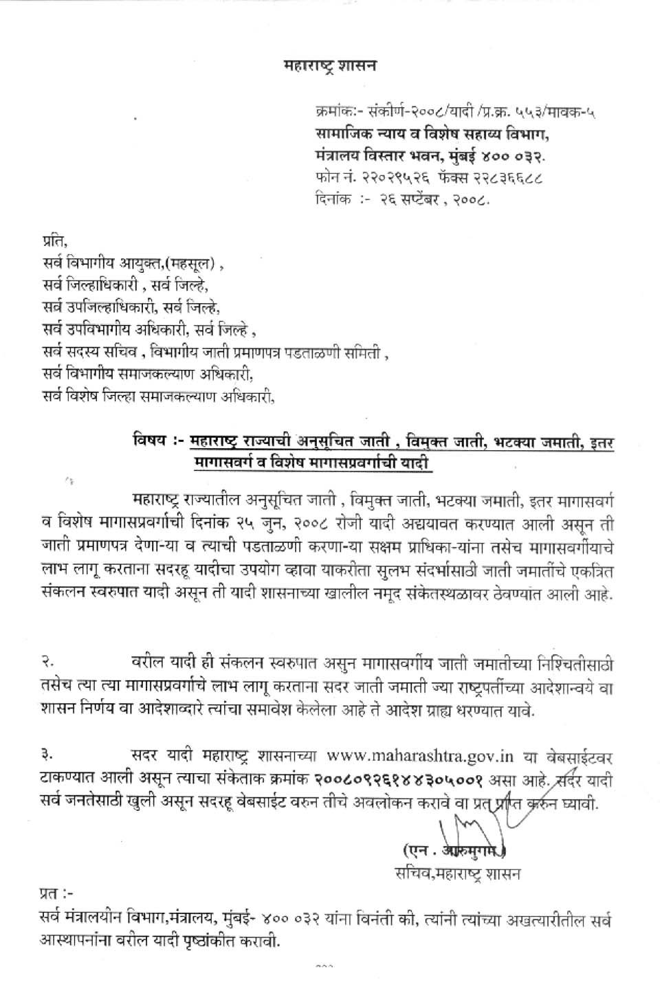 महाराष्ट्र राज्याची अनुसूचित जाती, विमुक्त जाती, भटक्या जमाती, इतर मागासवर्ग व विषेश मागासप्रवर्गाची यादी.