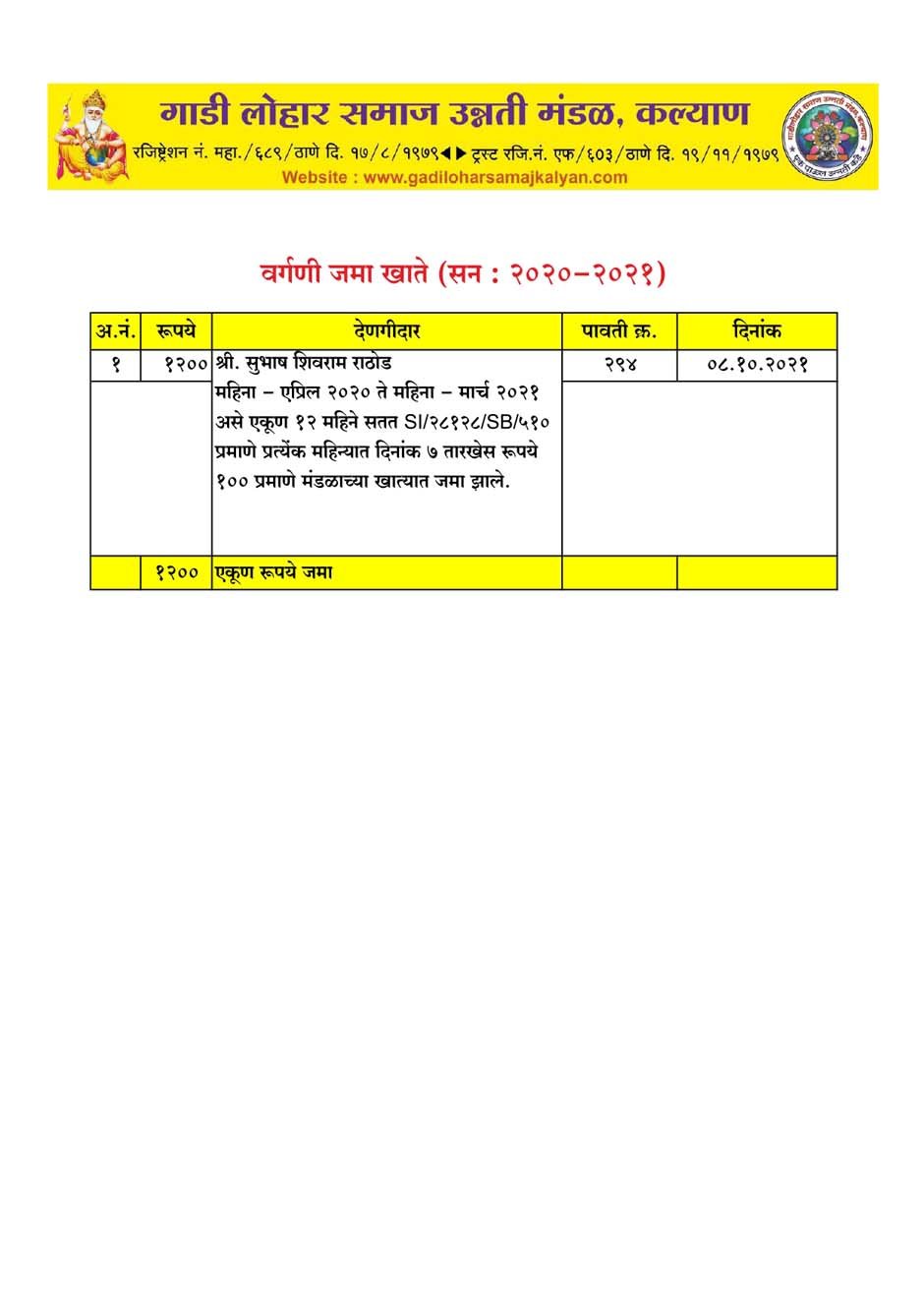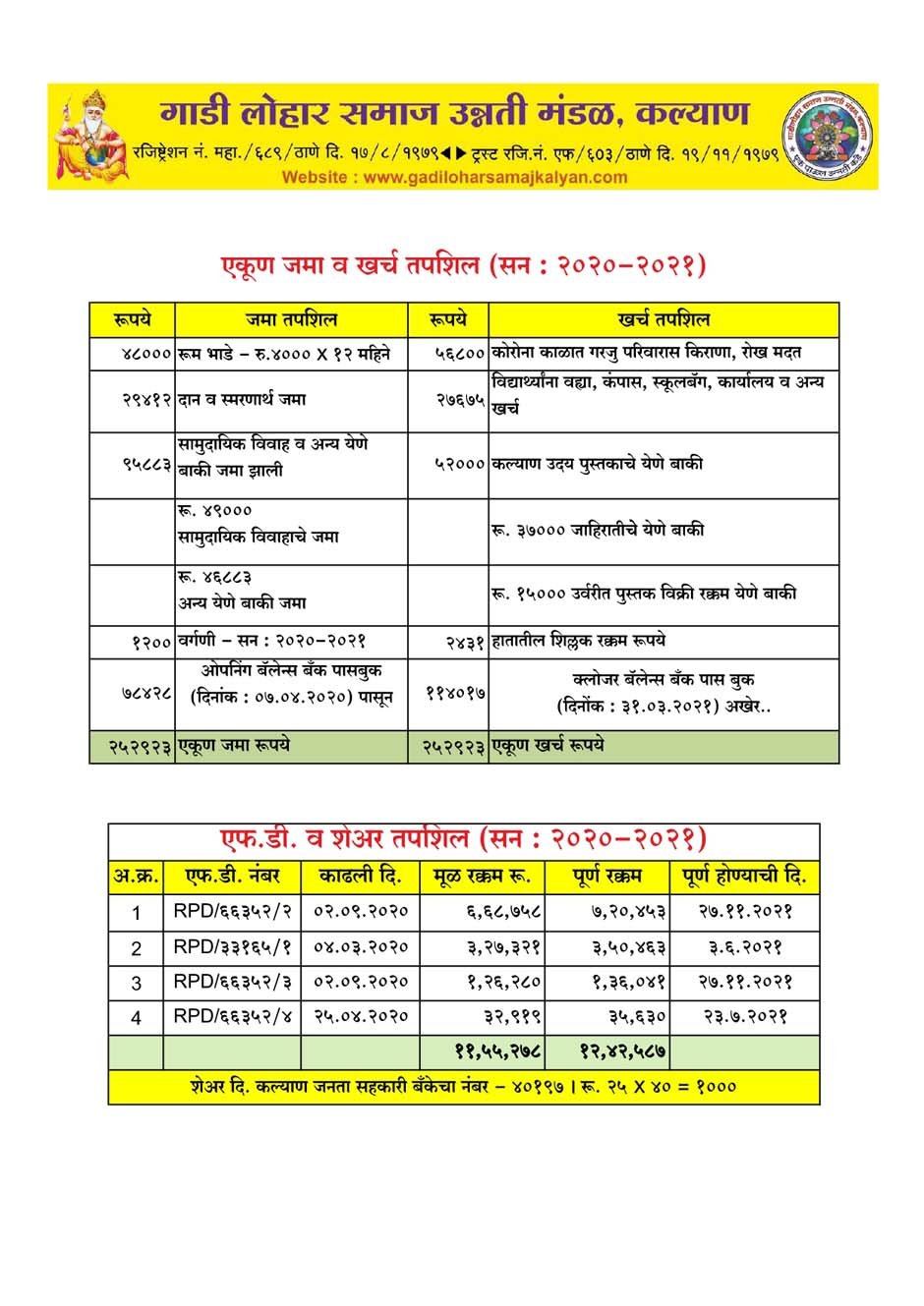 जमाखर्च २०२०- २०२१
