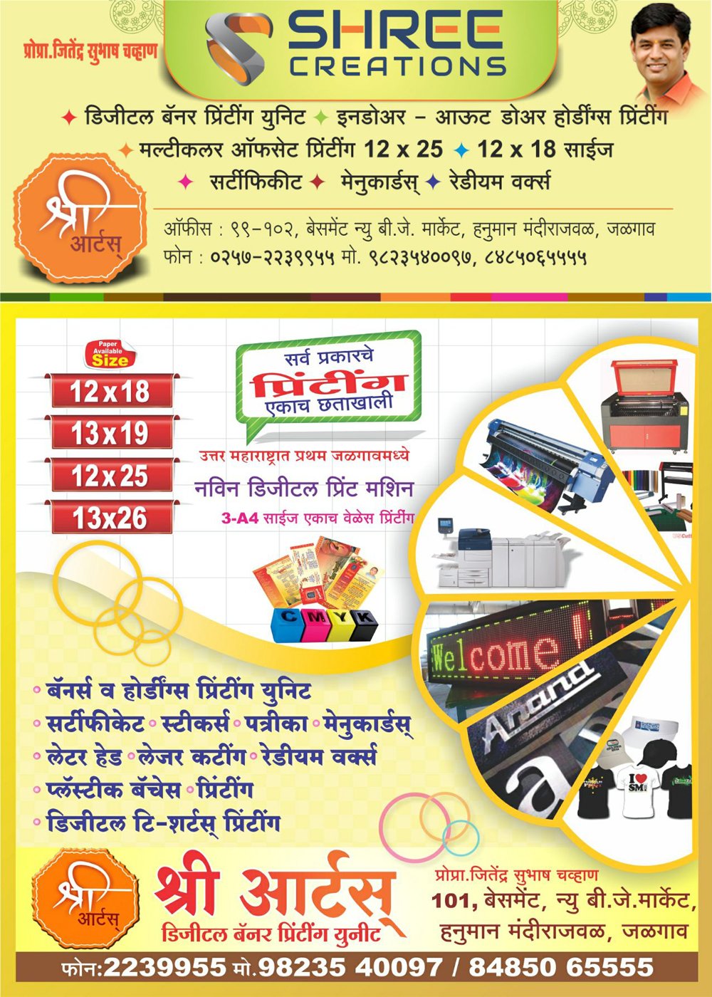 :: श्री आर्टस डिजीटल बॅनर प्रिंटींग युनीट :: फोन : २२३९९५५, मो. : ९८२३५४००९७ / ८४८५०६५५५५ ::